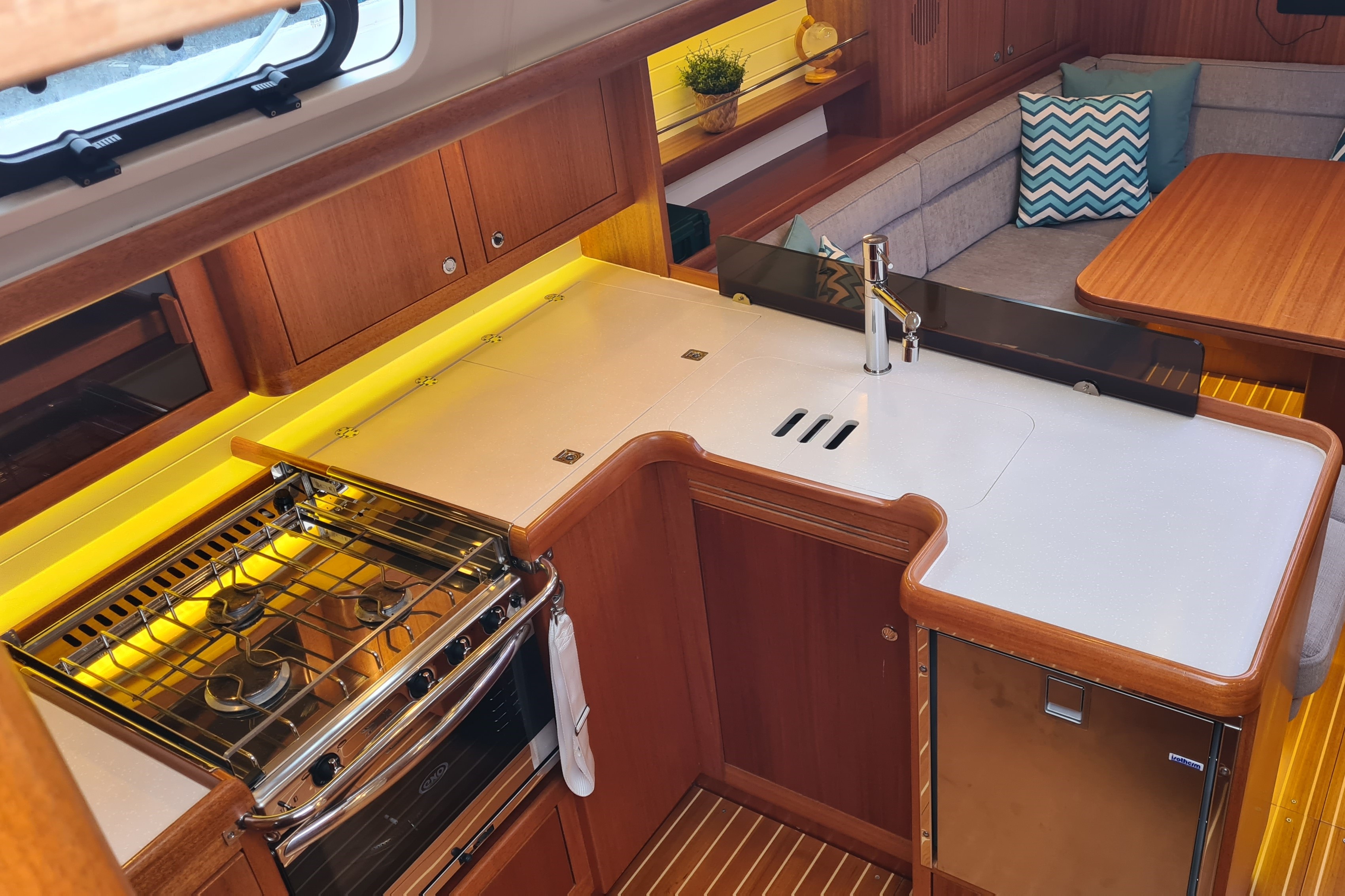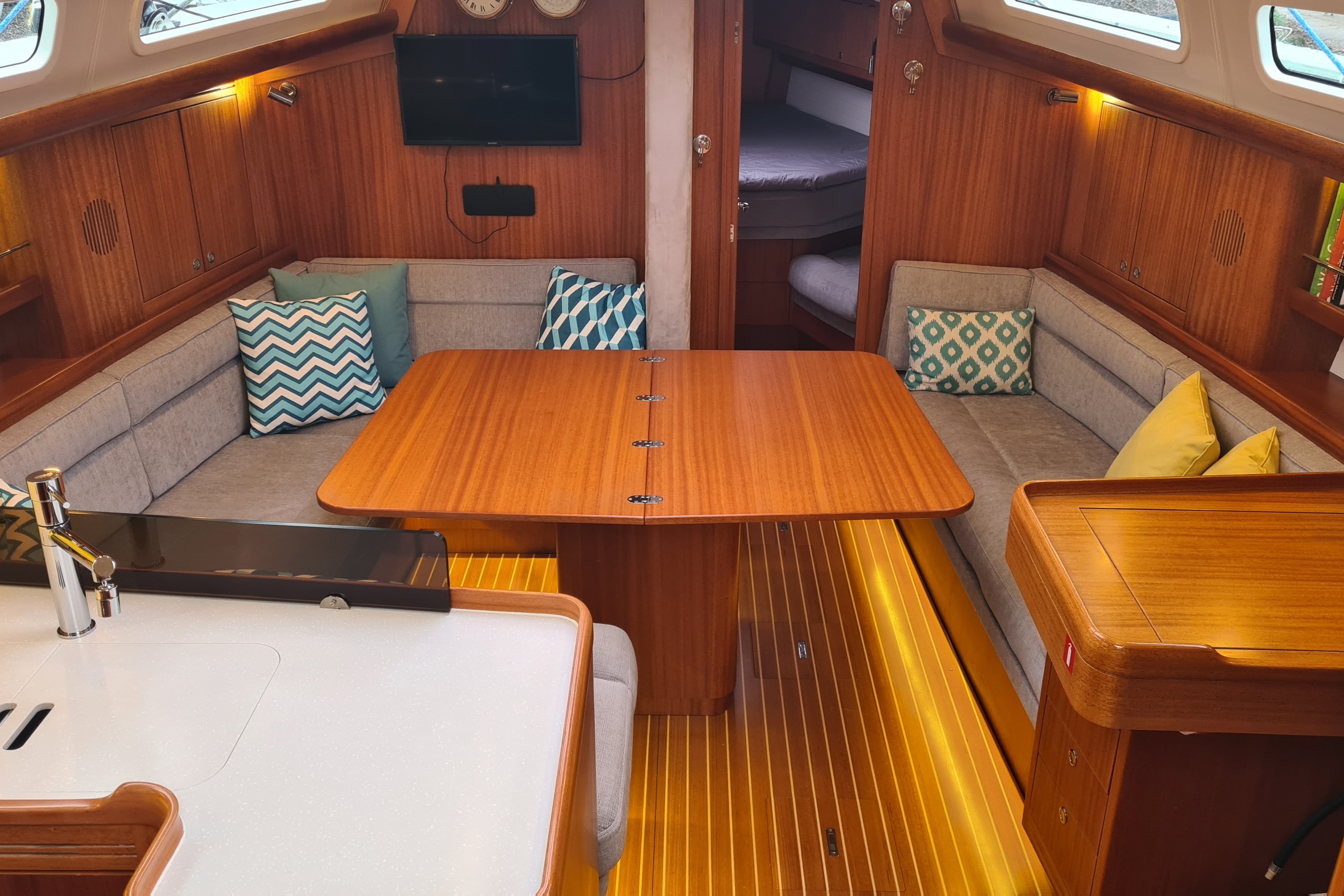Built using vacuum-infused construction, she is light, stiff, and strong, making her equally suited to fast cruising or competitive sailing. Below deck, Checkmate features Arcona’s trademark high-quality joinery, and practical layout, and comfortable accommodation ideal for extended time aboard.