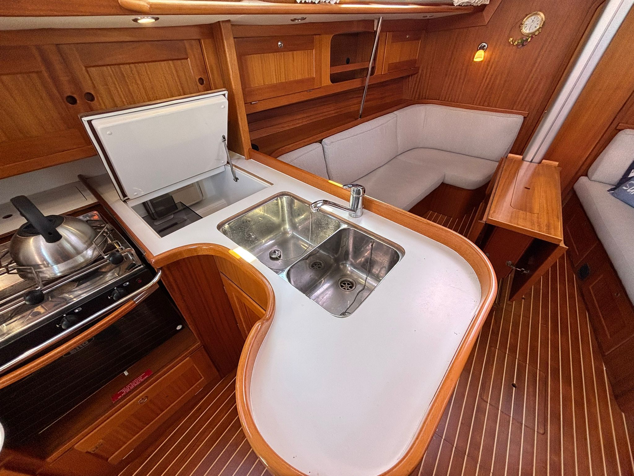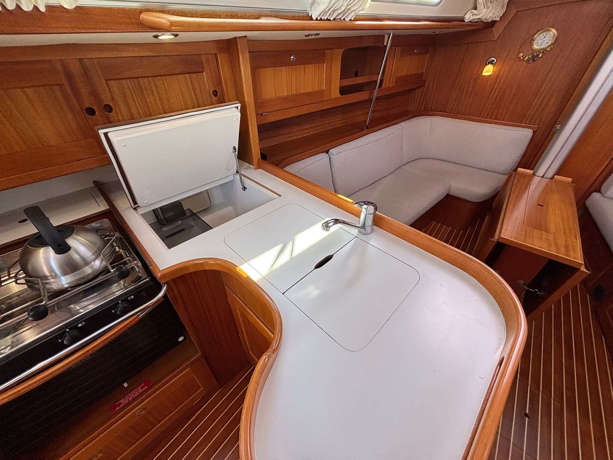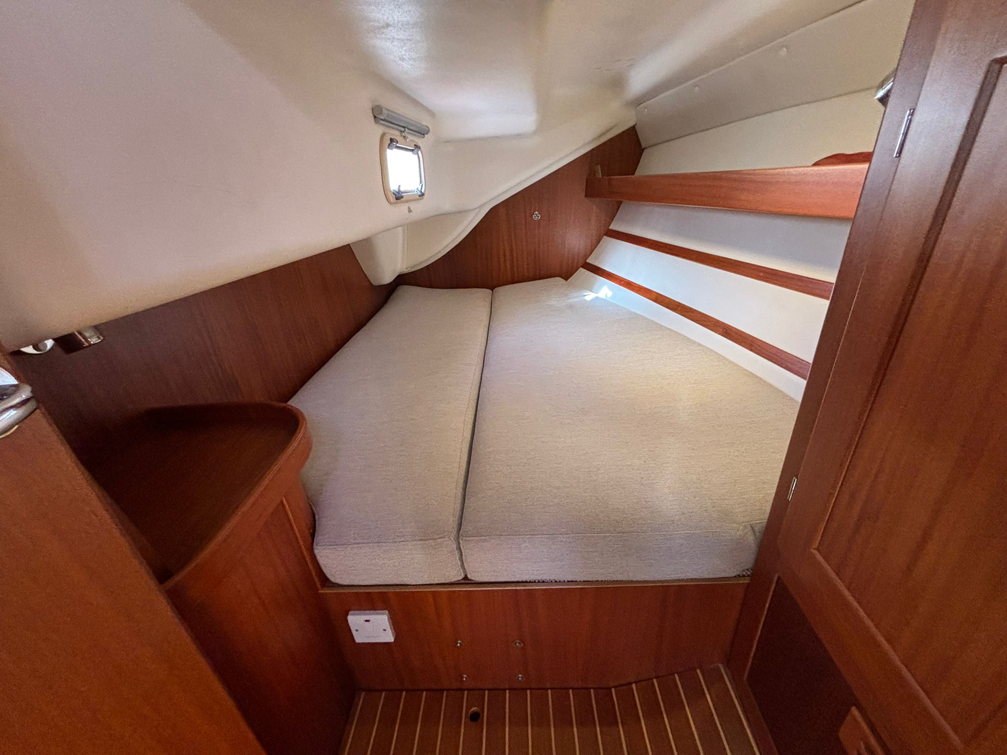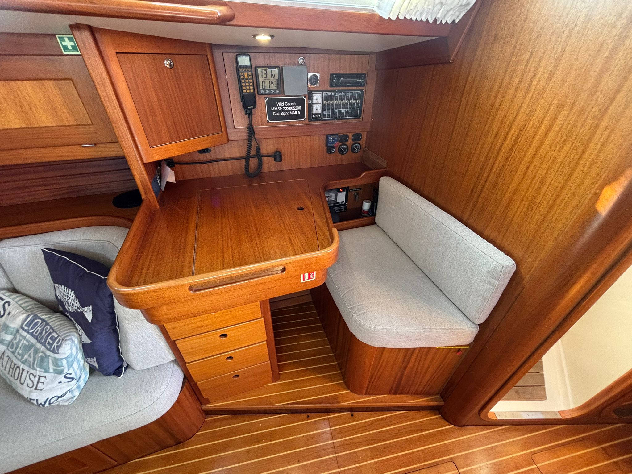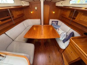 Primarily enjoyed as a family cruiser, Wild Goose has spent her time exploring the Solent and venturing further afield to Devon and Cornwall. Her well-designed cockpit offers both safety and security, while her build quality inspires confidence in all conditions – whether on a relaxed coastal passage or pushing on through more challenging seas.